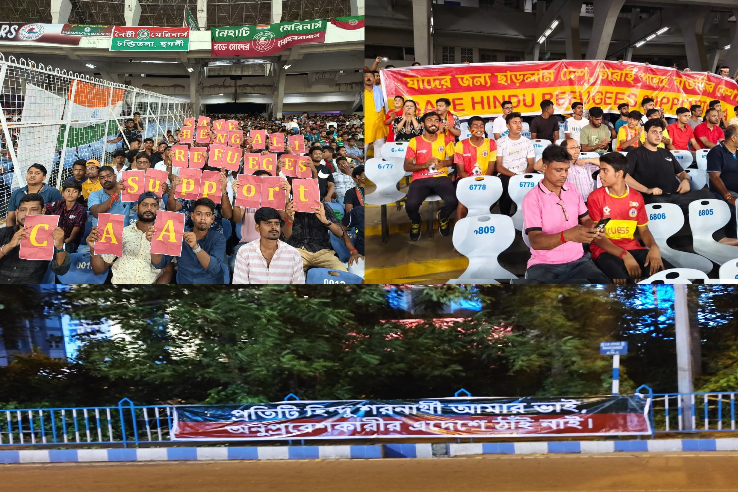 Fans in the gallery chanted slogans expressing support for Hindu refugees, including “Those for whom I left the country, they are wearing the clothes of Bengalis” and “Every Hindu refugee is my brother, an infiltrator has no place in this country.” This demonstration of unity occurred despite attempts by the police and administration to curtail the expression of emotion. Authorities removed large TIFO banners hung by supporters since morning.