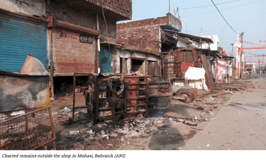The violence on October 13, 2024, began with a dispute over playing music on a DJ system during a Durga idol immersion procession in the Maharajganj area of Mahsi sub-division. The communal clashes began when a dispute over music during the procession escalated into stone-pelting between two groups. Provocative anti-Hindu slogans were allegedly raised on loudspeakers from a mosque, igniting tensions. The situation further deteriorated with reports of arson, desecration of Hindu procession and religious symbols, and stone-pelting.