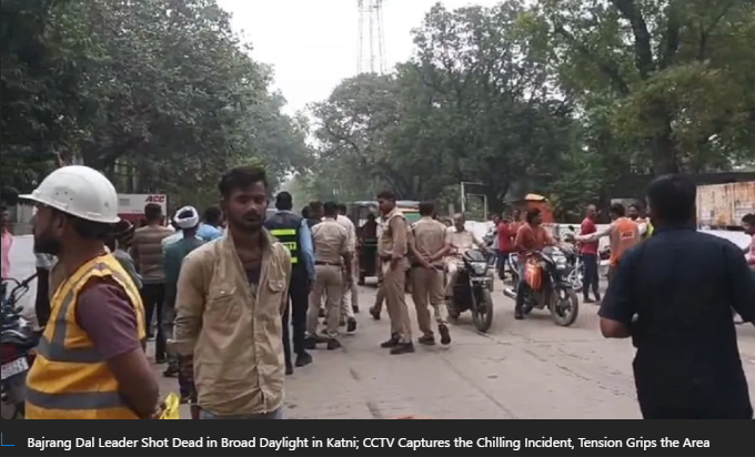Ranjit Ranjan | HENB | Bhopal | Oct 29, 2025:: A brazen daylight murder has sent shockwaves through Madhya Pradesh’s Katni district. Nilesh alias Neelu Rajak, a district official of Bajrang Dal, was gunned down by two masked men on a motorcycle near the Bank of Baroda in the Kaimor police station area. The incident, captured on CCTV, shows the attackers trailing Nilesh before opening fire and fleeing the scene.