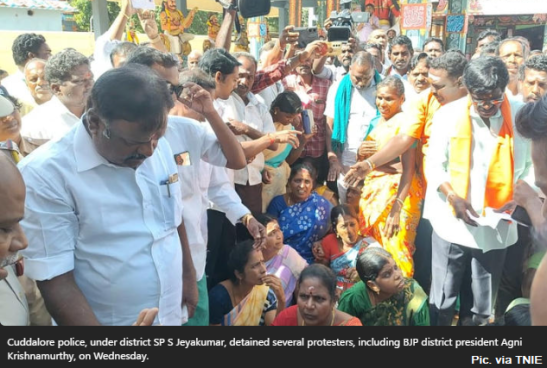 R Hridya | HENB | Cuddalore | Oct 30, 2025:: A heated standoff unfolded in Abatharanapuram village near Vadalur, Tamil Nadu, as villagers and Hindu Munnani members protested the HR&CE Department’s attempt to take over the 600-year-old Pachaivazhi Amman Temple. The renowned temple, known for its annual Theemithi (fire-walking) festival that draws devotees from Abatharanapuram, Vadalur, Serakuppam, Kurinjipadi, Vadakuthu, and surrounding villages. The temple has been under private management.