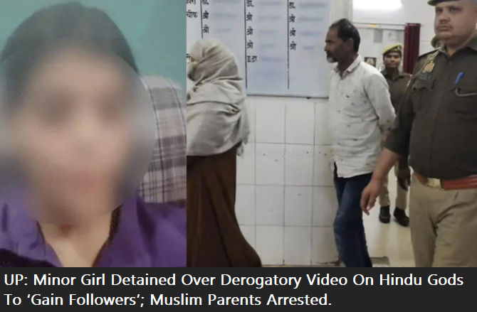 Upendra Bharti | HENB | Lucknow | Nov 4, 2025:: A minor Muslim girl has been sent to a detention home and her parents arrested after she posted an Instagram reel allegedly making derogatory remarks against Hindu deities. The video, which surfaced on October 27, reportedly aimed to attract more followers on social media.