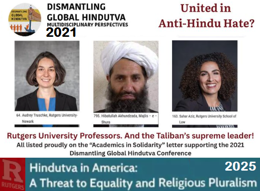 The heat came to Rutgers University for hosting an event titled “Hindutva in America: A Threat to Equality and Religious Pluralism” in 2025, with some pointing out its connection to a 2021 event called “Dismantling Global Hindutva” (DGH). Professors Audrey Truschke and Sahar Aziz, who were involved in both events, have been accused of having an anti-Hindu bias.