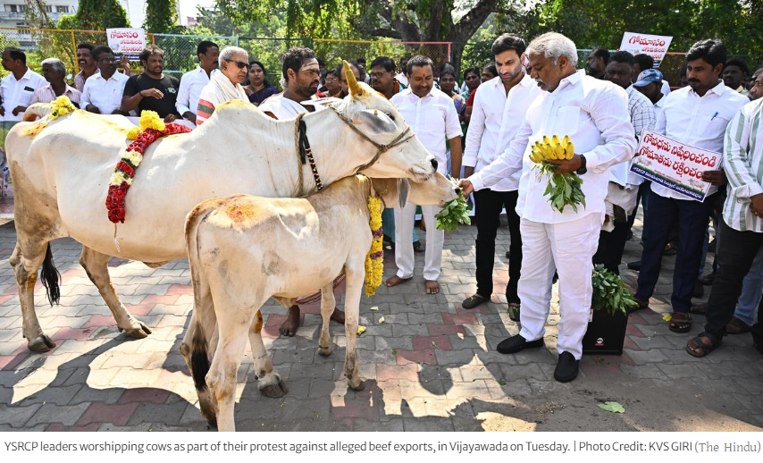B Upendran | HENB | Hyderabad | Nov 19, 2025:: The YSR Congress Party (YSRCP) has launched a scathing attack on the TDP-BJP coalition government in Andhra Pradesh, accusing it of neglecting Hindu Dharma and temple management. The party staged a protest, highlighting several issues, including the alleged mismanagement of temples, Hindu interest, cow slaughter, and beef export.