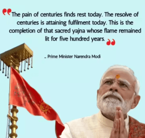 He said the flag represented “the sacred outcome of the saints’ devotion and the collective participation of society” and would, for generations, proclaim the ideals of Lord Ram.