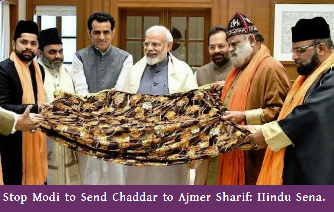 Upendra Bharti | HENB | New Delgi | Dec 6, 2025:: The Hindu Sena, led by national president Vishnu Gupta, has filed a petition in the Ajmer District Court seeking a ban on the practice of offering chaddar (decorative cloth) to the Ajmer Sharif Dargah by Prime Minister Narendra Modi and other constitutional personalities. The petition was filed on December 5, 2025, and was heard by Judge Manmohan Chandel, who issued a notice to the Ministry of Minority Affairs, Government of India.