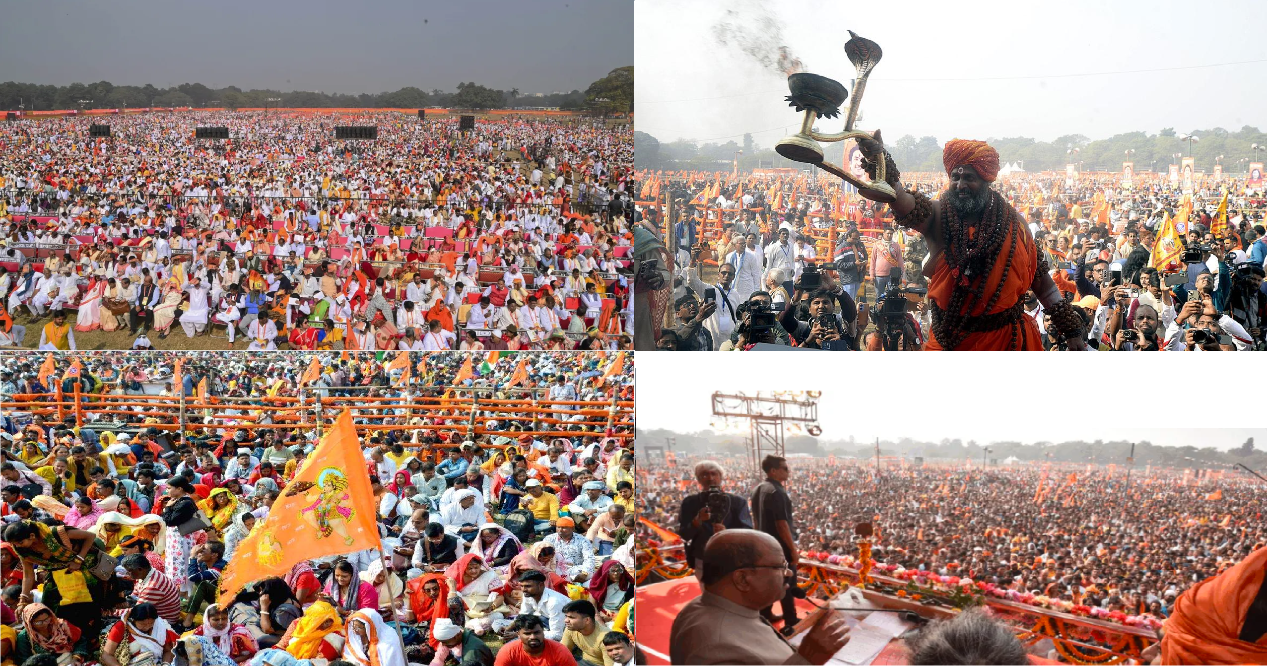 Swami Pradiptananda, popularly known as Kartik Maharaj, a prominent monk of the Bharat Sevashram Sangh, tried to downplay the political aspect of the event, saying, “This event has no big money involved, no matter how big the gathering is. This is an endeavor by a few saints who have nothing at their disposal. It’s a religious event, organized by sadhus and saints.”