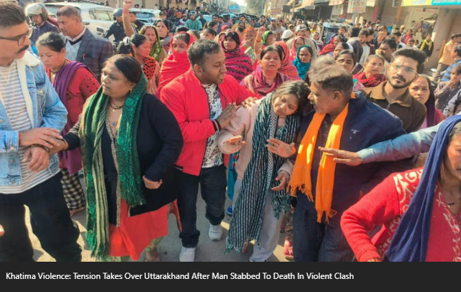 Ram Tiwari | HENB | Rudrapur | Dec 14, 2025:: Violence erupted in Khatima town of Udham Singh Nagar district (Uttarakhand) after a 24-year-old Hindu youth named Tushar Sharma succumbed to injuries from a knife attack late on Friday night. The incident triggered widespread protests, leading to clashes between the police and protesters.