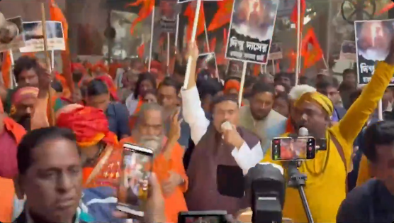 The protest rally began at Nizam Palace and culminated at Beckbagan, where around 5,000 BJP supporters squatted on the road, raising slogans and condemning what they described as the “lynching” of Dipu Das in Mymensingh on the night of December 18. According to reports, Das was beaten to death and his body was later set on fire.