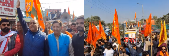 Upendra Bharti | HENB | Jammu | Dec 25, 2025:: Tensions escalated sharply in Jammu on Thursday as several right-wing Hindu organizations staged a high-intensity protest against the Shri Mata Vaishno Devi Shrine Board and the Jammu and Kashmir administration, demanding the relocation of Muslim students from the newly established Shri Mata Vaishno Devi Institute of Medical Excellence (SMVDIME). The protest, organized under the banner of the Shri Mata Vaishno Devi Sangharsh Samiti, has reignited debates surrounding representation, resource allocation, and the role of religious institutions in public welfare.