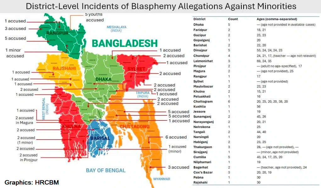 Upananda Brahmachari | HENB | New Delhi | Dec 27, 2025:: A newly released report by the Human Rights Congress for Bangladesh Minorities (HRCBM) has documented at least 78 incidents of violence, intimidation, and legal action linked to blasphemy allegations against Hindu minorities across Bangladesh over a six-month period between June and December 2025.