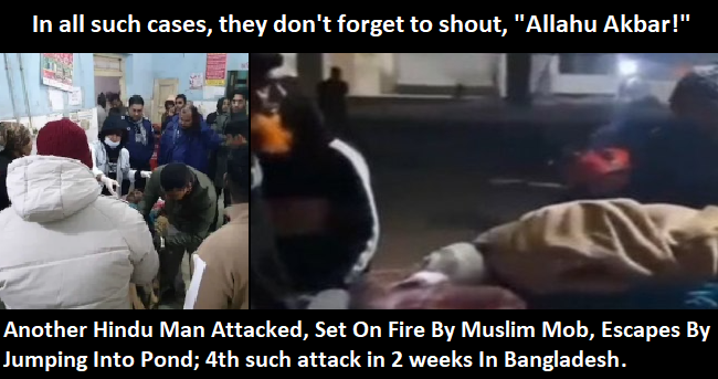 Upendra Bharti | HENB | Delhi | Jan 2, 2026:: A Hindu businessman in Bangladesh narrowly escaped death after being brutally stabbed, beaten, and set on fire by a group of assailants in the Shariatpur district, marking the fourth reported attack on Hindus in the country within two weeks.