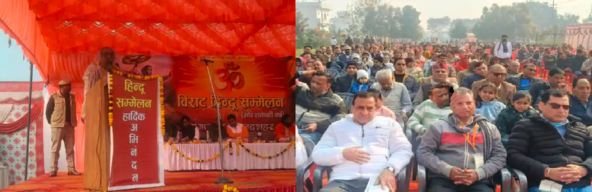 Addressing the gathering, the Kalki Peeth pontiff Acharya Pramod Krishnam asserted that India’s historical subjugation was not due to the strength of foreign powers but because of “traitors within the country.” He said that those who oppose Hindutva today are themselves part of Hindu society and cannot separate themselves from its cultural roots.