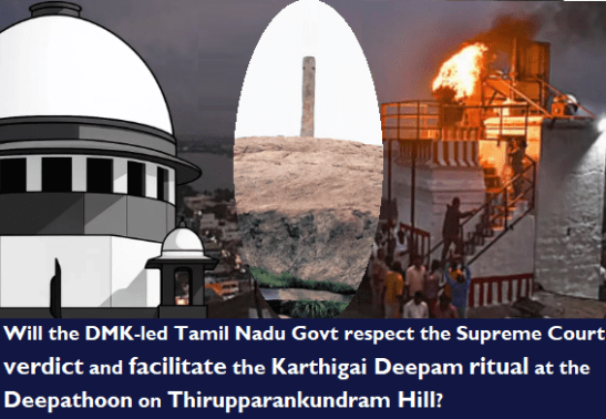 The verdict now places the onus squarely on the DMK-led Tamil Nadu government to demonstrate its commitment to constitutional propriety and judicial discipline by faithfully implementing the Supreme Court’s ruling and ensuring that the traditional Karthigai Deepam ritual at the Deepathoon is carried out without obstruction or delay.
