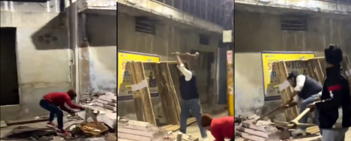 The video purportedly shows at least six men using hammers to damage and dismantle the structure. Officials confirmed that, despite the circulation of the footage, the situation in the area remains peaceful.