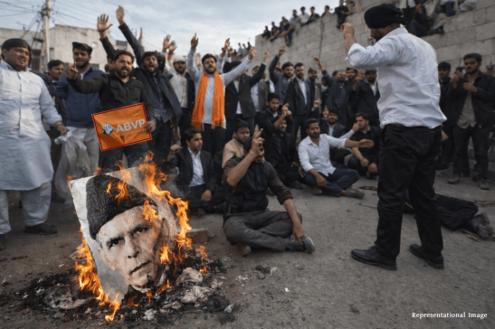 According to reports, ABVP activists gathered on campus under the leadership of Jammu and Kashmir Secretary Sannak Shrivats, raising slogans against the university administration and demanding the immediate removal of the chapter. The contested content is part of the module “Modern Indian Political Thought” under the paper “Minorities and the Nation.” Protesters also tore posters depicting Jinnah and warned that their agitation would intensify if the demand was not met.