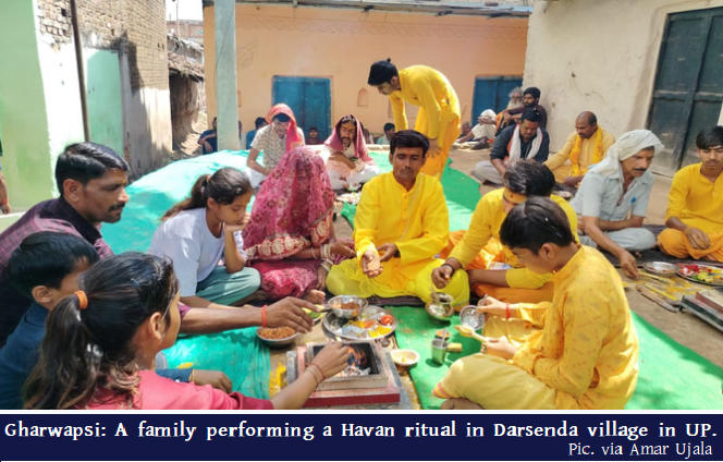 Upendra Bharti | HENB | Banda (UP) | April 2, 2026:: In a development that drew local attention, a family in Darasenda village under the Pahari police station limits of Banda district formally returned to the Hindu faith through a ceremonial “homecoming” ritual conducted with traditional Vedic practices.