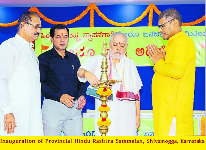 B Upendran | HENB | Shivamogga (Karnataka) | April 6, 2026:: A provincial-level Hindu Rashtra Sammelan held on Sunday at the Kalmath campus in Shivamogga witnessed strong calls for political consolidation among Hindus, with speakers urging voters to move beyond caste divisions and support the formation of a government rooted in Hindutva philosophy and ideology of Hindu Rashtra. The conference was organised by Hindu Janajagruti Samiti (HJS).