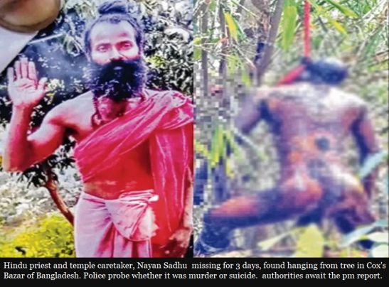 Kabita Saha | HENB | Dhaka | April 27, 2026:: A 40-year-old Hindu priest and temple caretaker, identified as Nayan Sadhu, was found dead under suspicious circumstances in southeastern Cox’s Bazar, three days after he reportedly went missing. The incident has sparked concern among minority organisations, which are demanding prompt arrests and a thorough investigation.