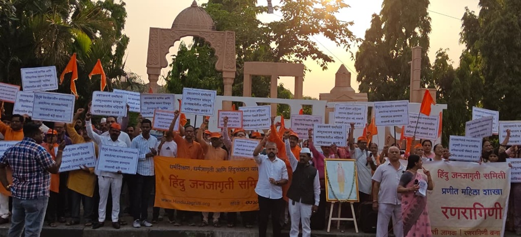 According to a press release issued by the Hindu Janajagruti Samiti (HJS), the demonstration was organised to “protect the sanctity” of the historic garden and the nearby Shri Siddhivinayak Temple, which holds religious importance for many Hindus. The organisers stated that the protest followed a large Muslim gathering reported in the area during Ramadan last month, which they alleged created an “anti-Hindu atmosphere” and involved the presence of many outsiders.
